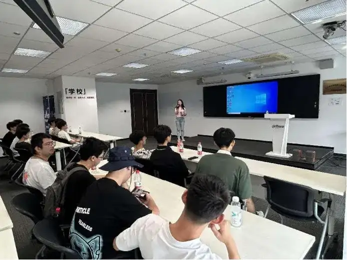 參觀的最后,大華股份講解員為學(xué)員們帶來(lái)了一場(chǎng)校園智慧管理的主題講座。講解員從學(xué)校現(xiàn)狀出發(fā),深入淺出地分析了學(xué)校的管理和安防面臨的技術(shù)革新,并詳細(xì)介紹了大華在算法優(yōu)化、邊緣計(jì)算、物聯(lián)網(wǎng)集成等方面的技術(shù)突破,并強(qiáng)調(diào):“未來(lái)的安防將更加依賴(lài)于智能化,我們需要不斷探索新的算法模型,提升數(shù)據(jù)處理效率,同時(shí)保證用戶隱私和數(shù)據(jù)安全。”