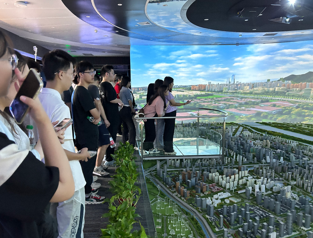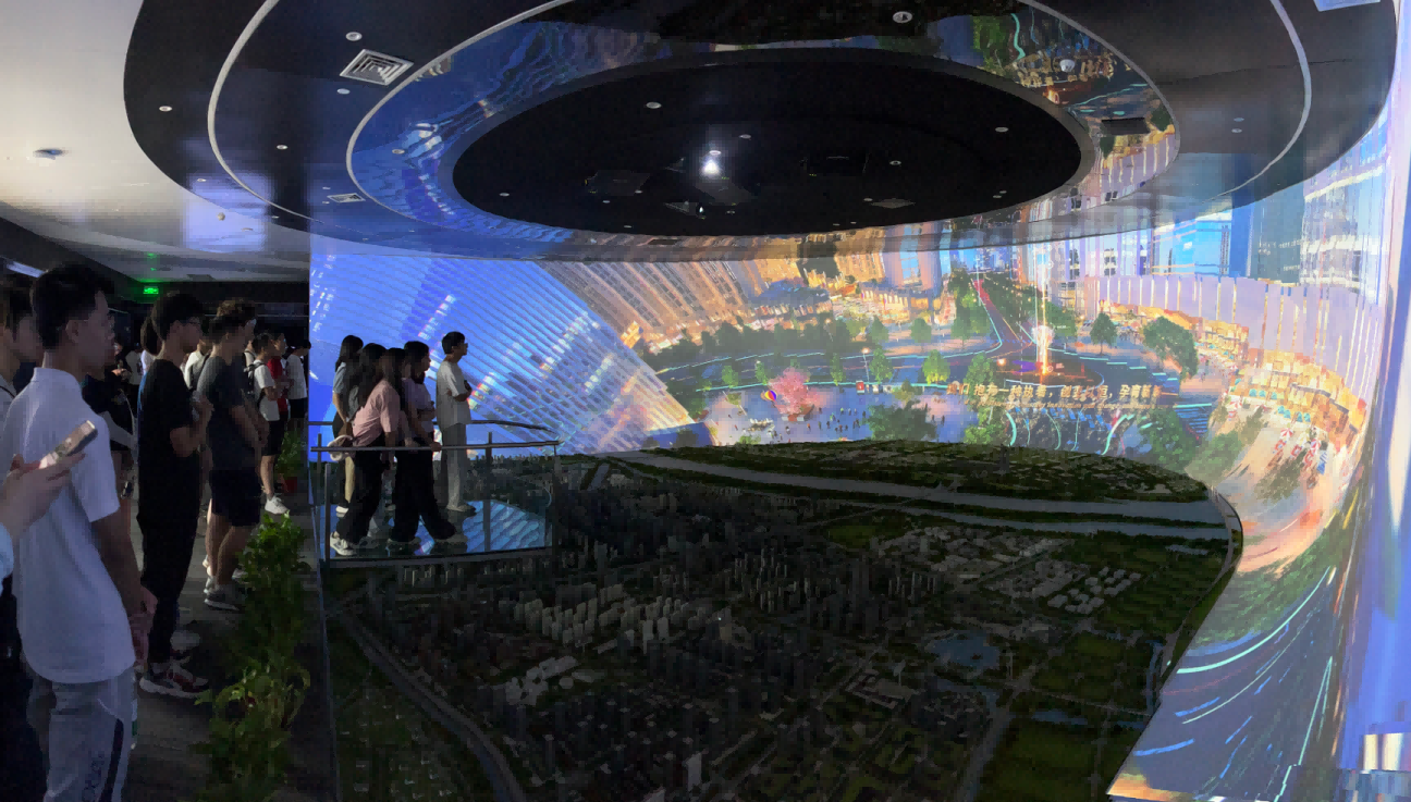 園區內現代建筑群錯落有致,每一磚一瓦都蘊含著創新和科技的基因。evo真人视讯科技IT菁英暑期實訓營的學員們懷揣著對科技的無限憧憬步入研創園展廳。展廳內部設計充滿科技感,一塊塊巨大的模型和顯示屏映入眼簾,生動展現了研創園的科技規劃,以及從夢想走向現實的開展歷程。