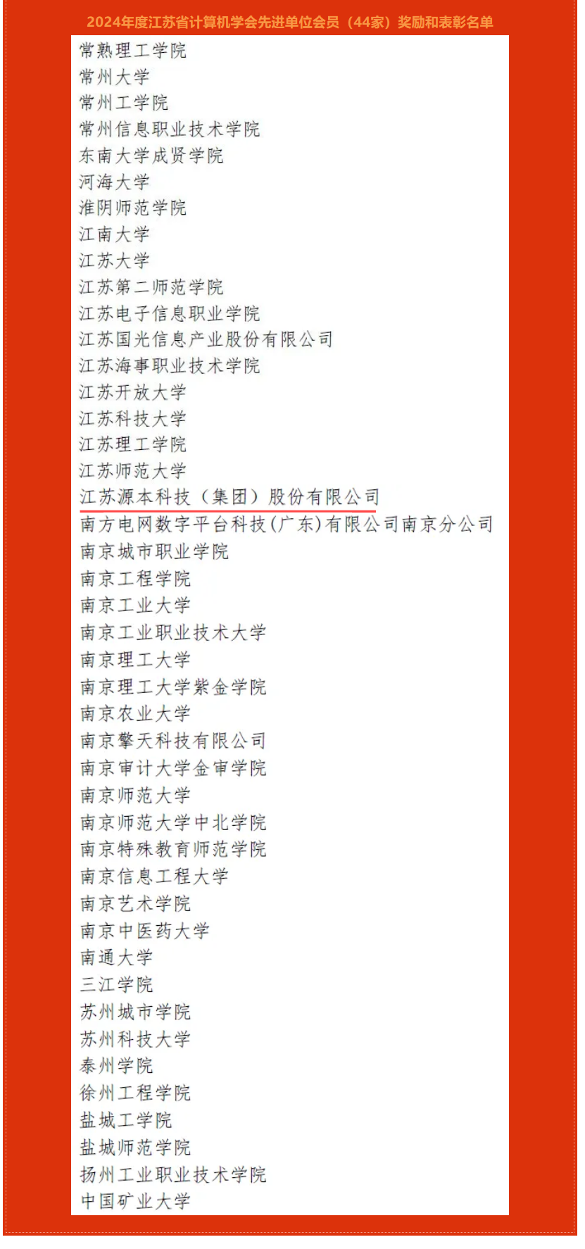 榮獲江蘇省計算機學會2024年度先進單位會員