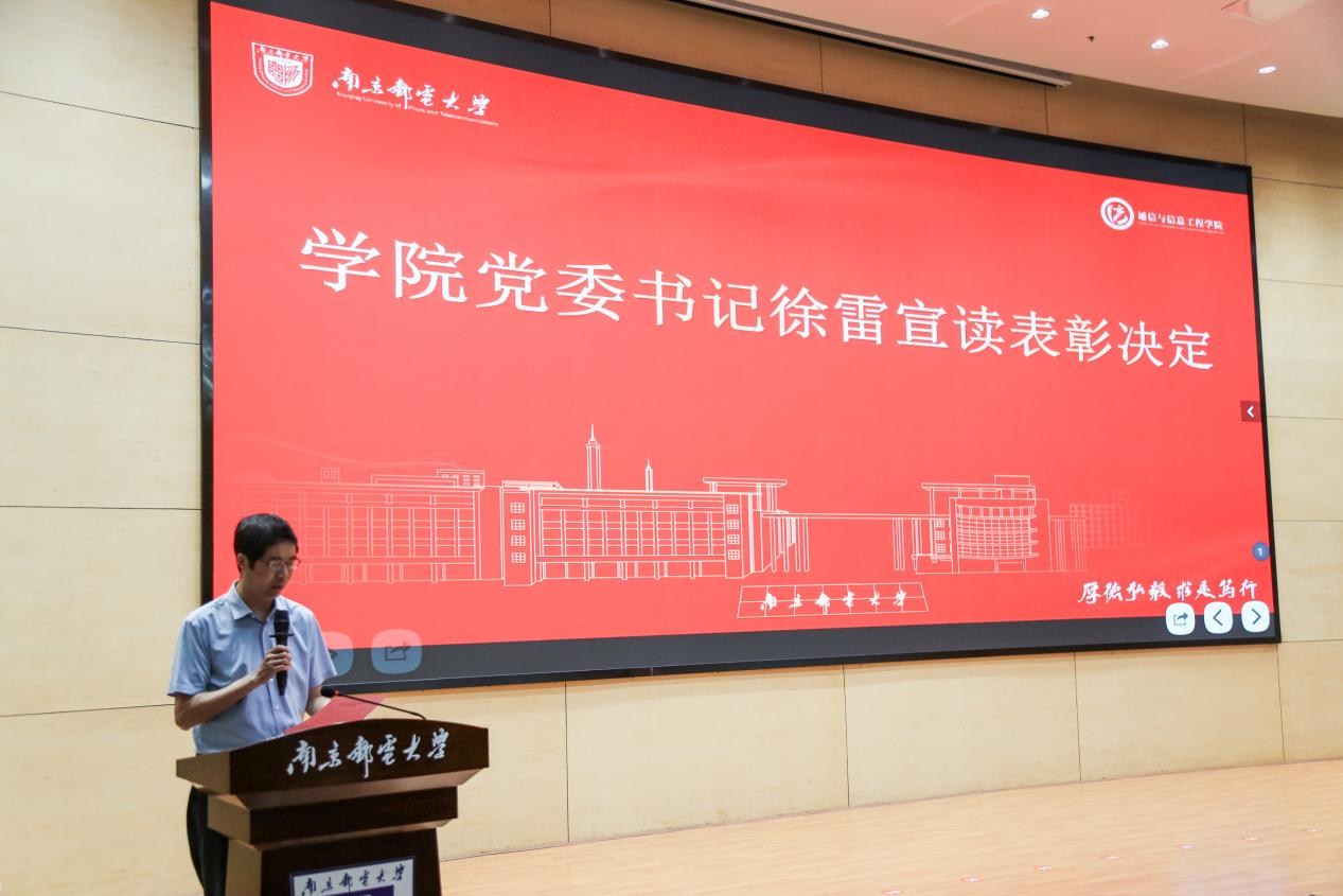 進入大會下篇“見賢思齊,踵事增華 —— 學生表彰大會”,南京郵電大學通信與信息工程學院黨委書記徐雷宣讀表彰決定,眾多在學術科研、社會實踐等領域表現優異的學生取得表彰。