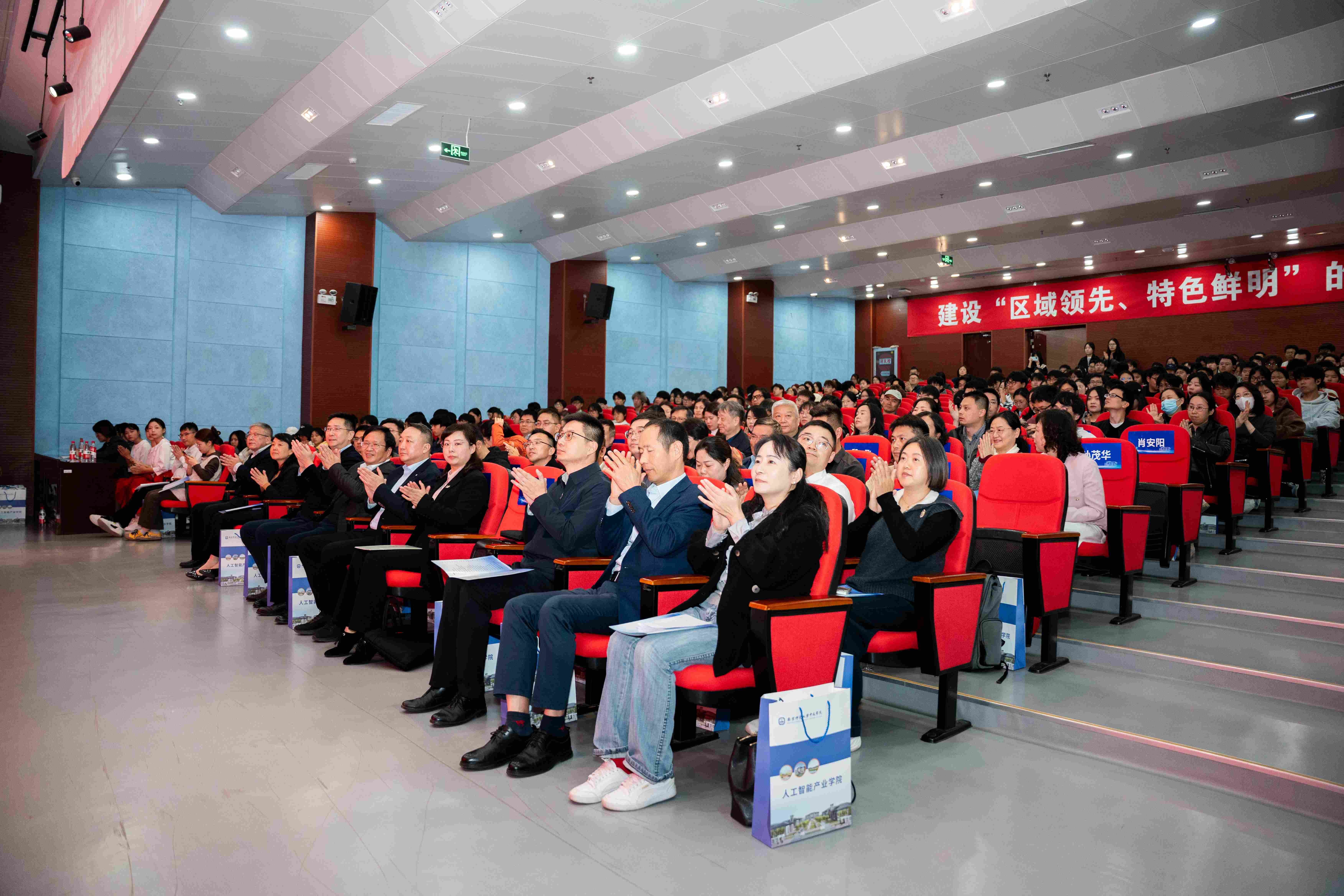 大會由南師大中北學院黨委書記周燕主持,她在開場致辭中強調(diào):“人工智能產(chǎn)業(yè)學院的創(chuàng)建,是學院有助于高質(zhì)量應用型人才培養(yǎng)的關鍵舉措。”在嘉賓致辭環(huán)節(jié),多位領導的發(fā)言讓現(xiàn)場企業(yè)代表深受啟發(fā)。南京師范大學黨委常委、副校長岳嵩指出,人工智能正以“顛覆性力量”重構(gòu)教育與產(chǎn)業(yè)邏輯,中北學院要以產(chǎn)業(yè)學院為載體,打造區(qū)域經(jīng)濟開展的“智能引擎”。丹陽市副市長謝豐羽則聚焦地方產(chǎn)業(yè)特色,希望產(chǎn)業(yè)學院能扎根丹陽,與本地眼鏡、汽車零部件、五金工具等優(yōu)勢產(chǎn)業(yè)深度融合,助力丹陽從“制造大市”向“智造強市”轉(zhuǎn)型。